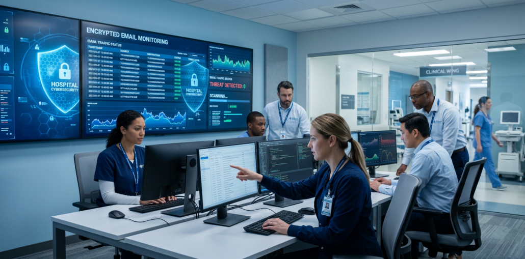Healthcare is a high-value target because email often contains patient data, payment details, lab results, referrals, and login credentials. A single compromised mailbox can expose thousands of records and trigger costly incident response.