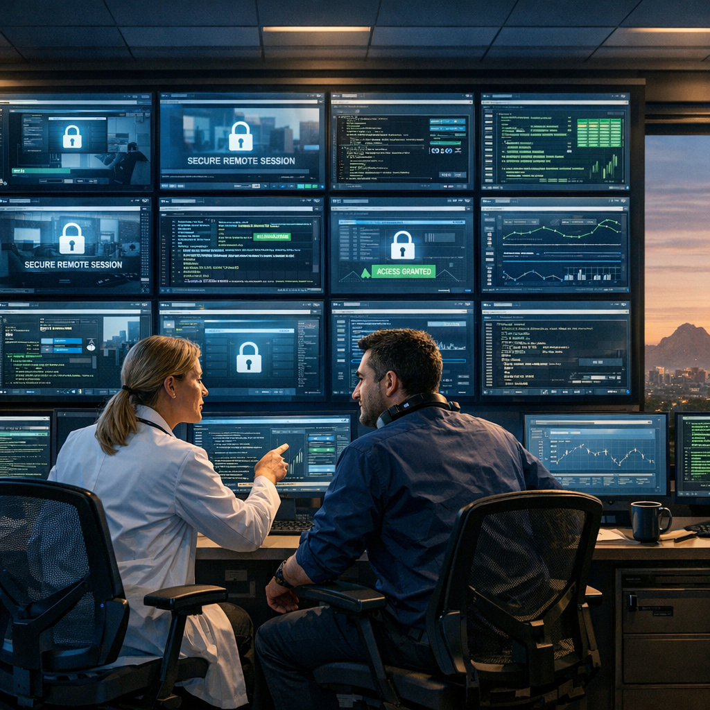 Remote desktop access can be HIPAA-compliant if you combine managed infrastructure, strong identity controls, session protections, and logging. Use VDI or managed remote desktop services hosted in compliant Arizona data centers to keep PHI inside controlled environments and simplify Business Associate Agreement needs. This article includes a technical checklist, implementation tips, and frequently asked questions for IT leaders and compliance officers.